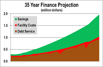 These numbers are based on a late 2011 energy audit prepared by Johnson Controls.  The pattern will adjust as stakeholders opt “in” and “out” of the proposal and when plans are finalized.  Risk to stakeholders is nearly eliminated by guarantees from Johnson Controls.  Should the costs be greater than projected, or savings less than expected, then Johnson Controls will pick-up the difference.