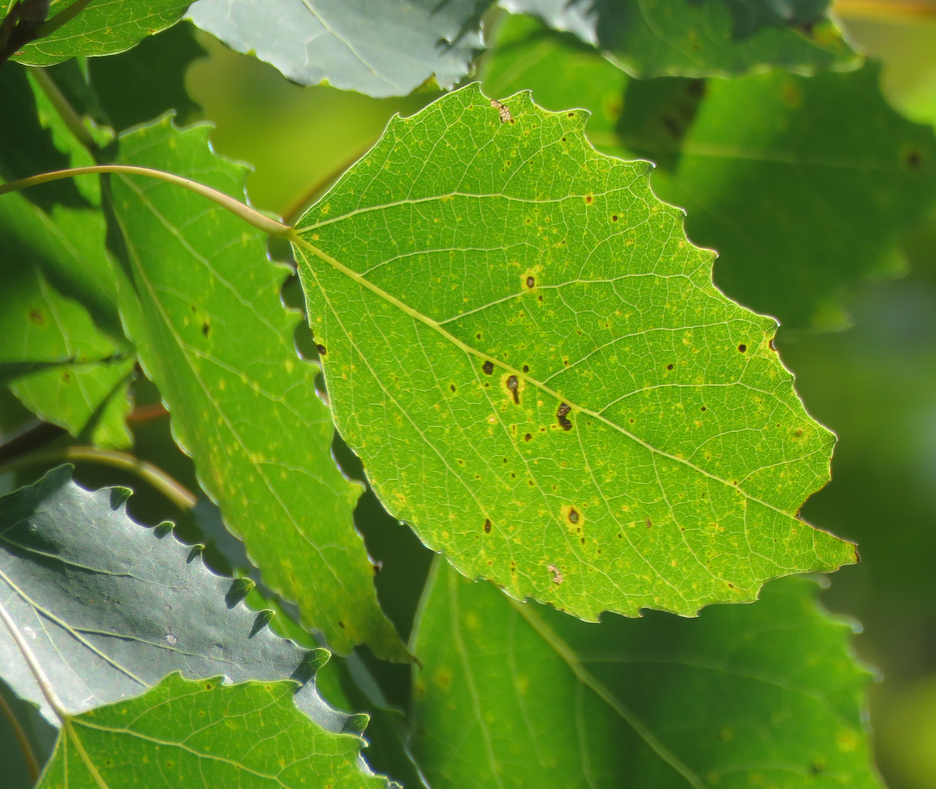 Most of the family members possess flattened petioles, or leaf stems.  This structure allows the leaf to flitter in even the slightest of breezes.  Quaking aspens have particularly mastered this capability, thus the name quaking or trembling.  Some say that this allows for more photosynthesis.